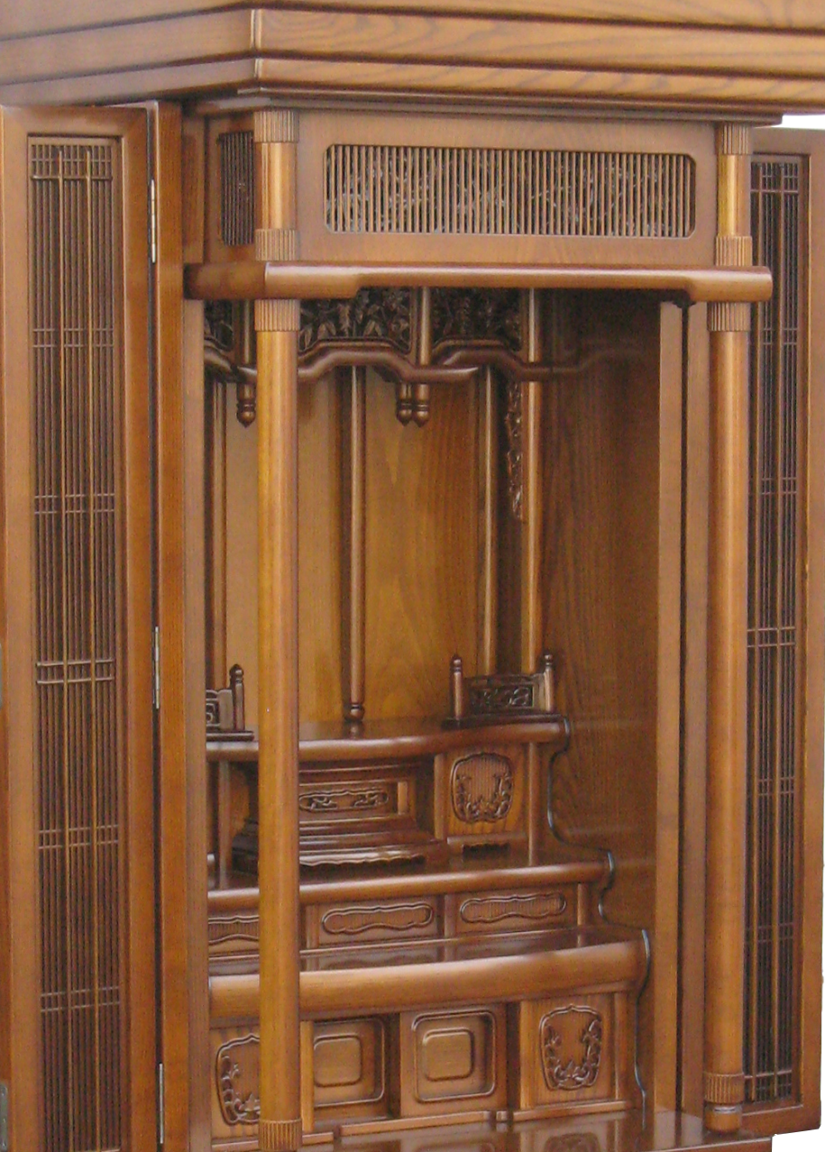 がっちりとした枠や、厚板で囲われた箱の正面に扉や引き戸のあるいれ物を厨子といいます。厨子型仏壇は 、災害に遭っても避難させることができるし